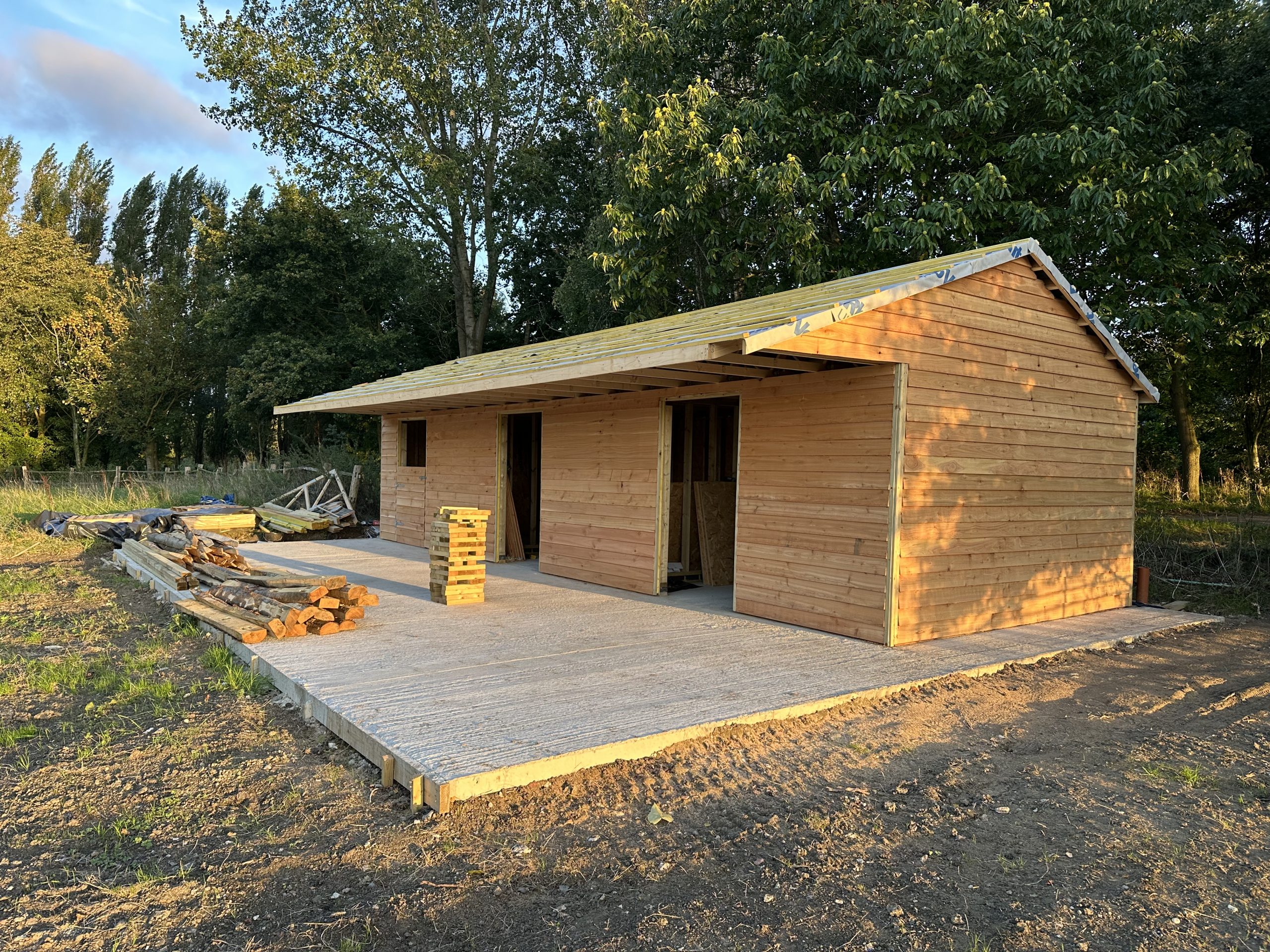 As with all our projects, we undertook every aspect. From the design, planning, project management and each element of the build. The Ground works, drainage, concrete pour, frame construction, Roofing and beautiful cedar cladding. This was built for a local agricultural college, where we complete several other similar projects.
